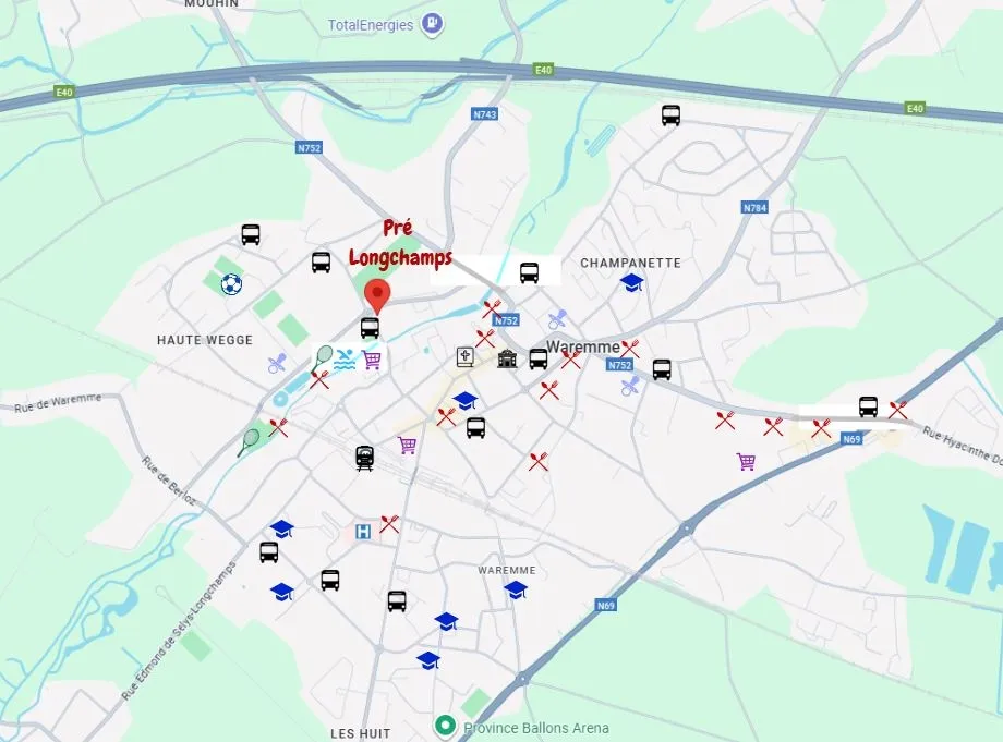 Elle bénéficie d’un emplacement stratégique, à deux pas des commerces, de la gare et du hall sportif.